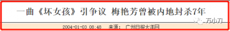 到了1995年,梅艳芳首次在内地开启巡回演唱会,因她临时加唱禁歌《坏女孩》,被内地“封杀”,导致其他内地演唱会场次全部取消。